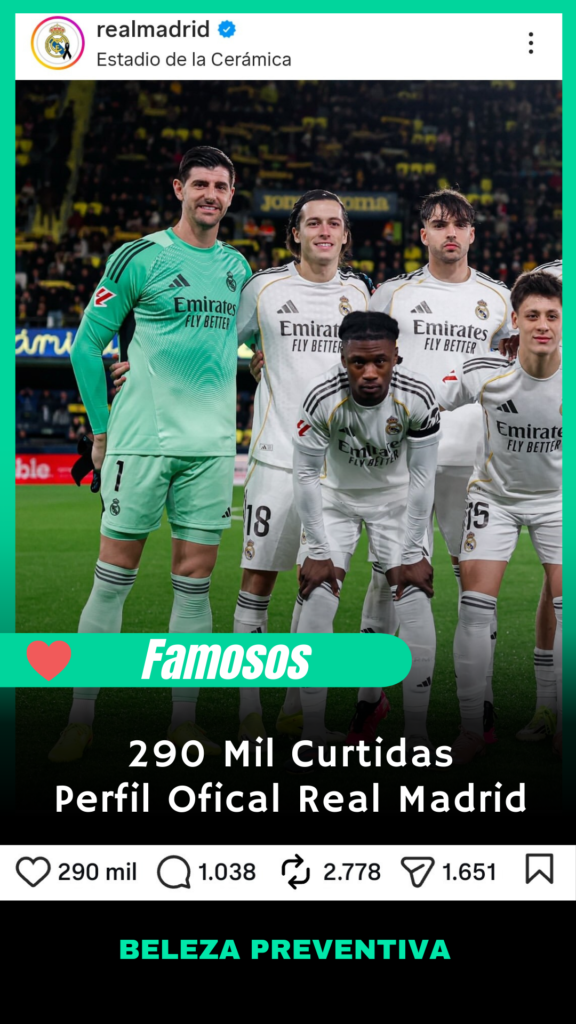 Enquanto o Time do Real Madrid obtém 290 mil Curtidas em seu perfil oficial